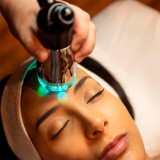 - Luz verde: Efeito do tratamento: Regulação da função das glândulas da pele, melhora a pele oleosa, espinhas, acne, etc. Tipo de pele: pele oleosa.