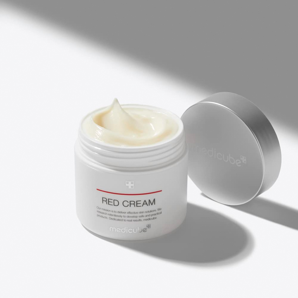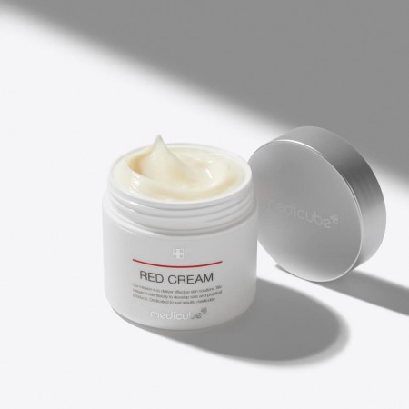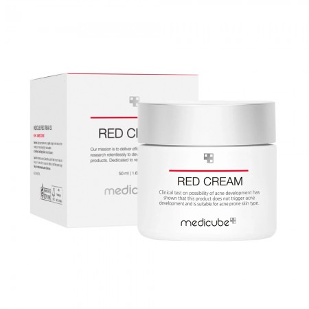 O Red Cream da Medicube é uma creme calmante e não irritante, desenvolvido especialmente para peles oleosas, sensíveis e com tendência à acne.