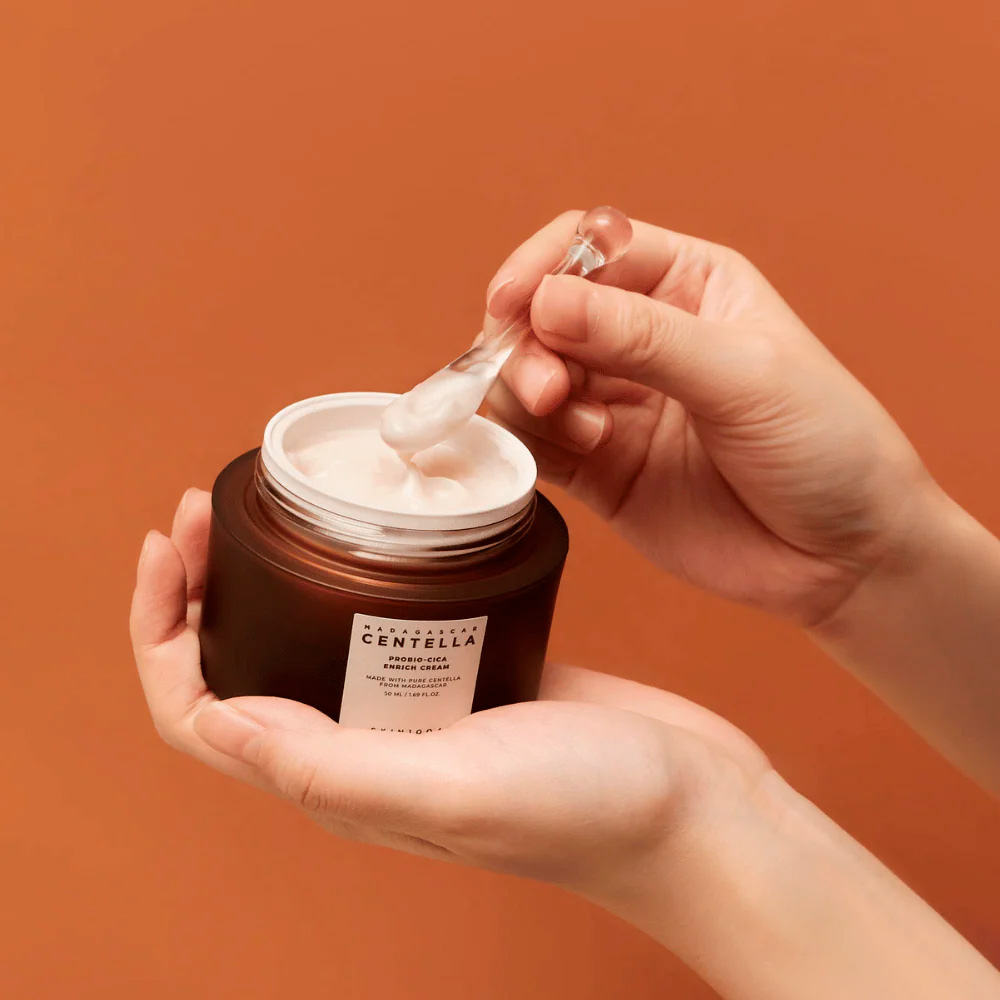 Probio-Cica Enrich Cream, um creme facial nutritivo com textura rica e amanteigada que ajuda a fortalecer a barreira da pele e proporcionar hidratação intensa sem sensação pesada ou pegajosa. Sua fórmula combina Centella Asiática fermentada, manteiga de karité e Ceramide NP, ingredientes que trabalham juntos para acalmar a pele, melhorar a elasticidade e restaurar a hidratação natural. Com acabamento sedoso e confortável, este creme é ideal para manter a pele nutrida, protegida e com aparência saudável. Indicado para peles secas, normais e mistas.