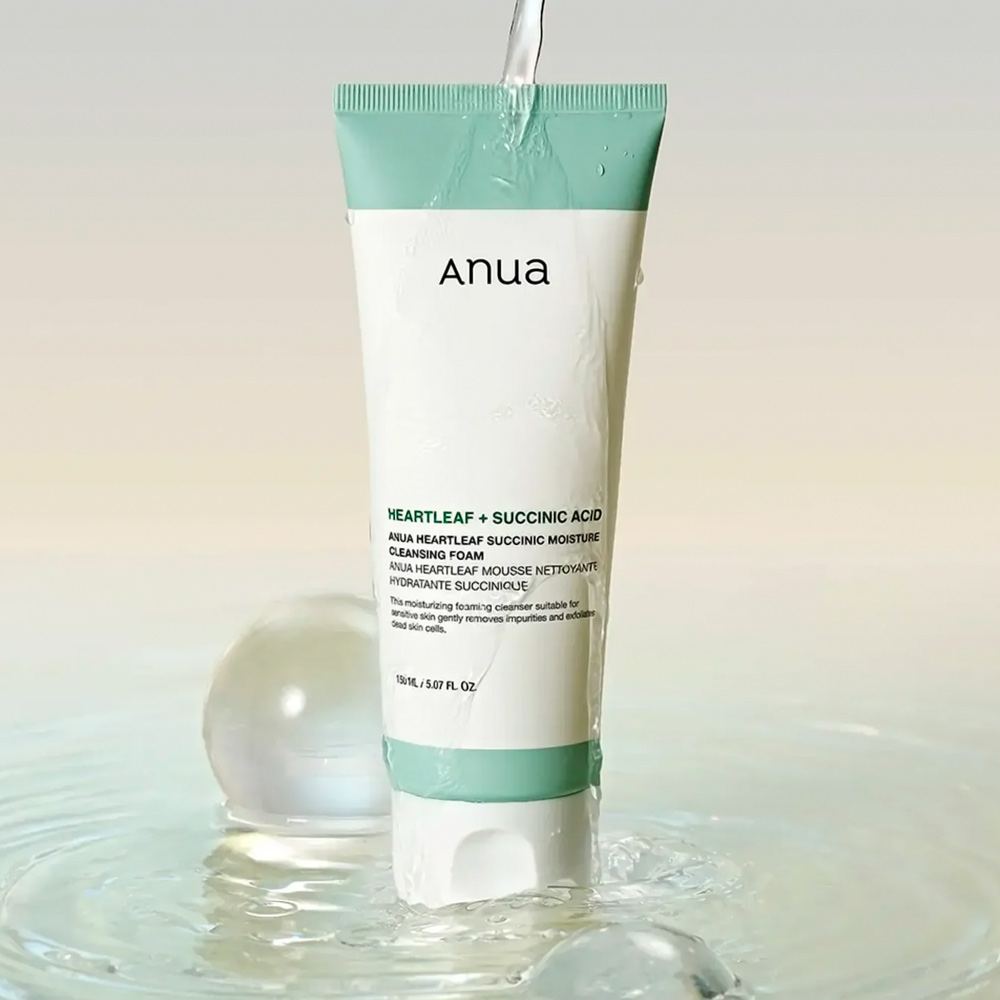 A Anua Heartleaf Succinic Moisture Cleansing Foam é uma espuma de limpeza facial suave e hidratante formulada com extrato de Heartleaf (Houttuynia Cordata) e Ácido Succínico. Esta fórmula limpa profundamente as impurezas e o excesso de oleosidade sem ressecar a pele, ajudando a acalmar irritações e proporcionando hidratação leve. Após o uso, a pele fica macia, equilibrada, fresca e confortável, com sensação de limpeza delicada e saudável.