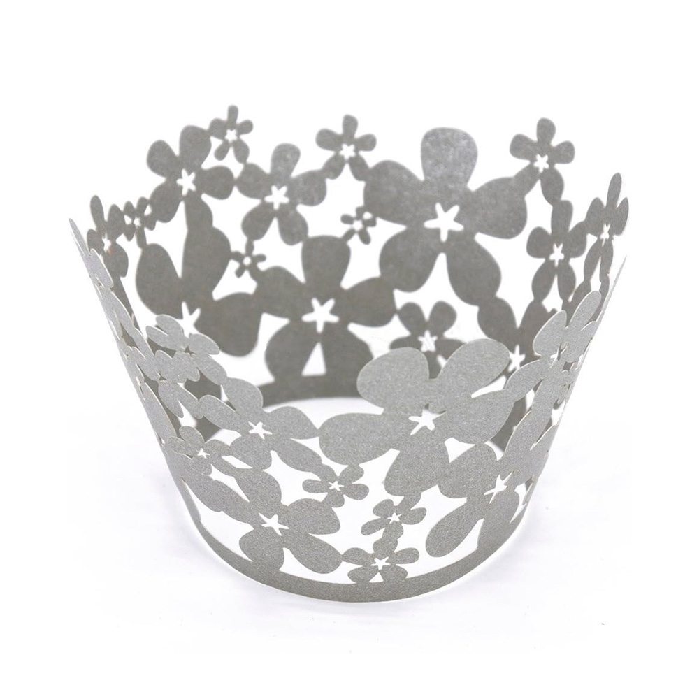 Kit Wraps para Cupcakes Flores W07 Cinza 25pcs