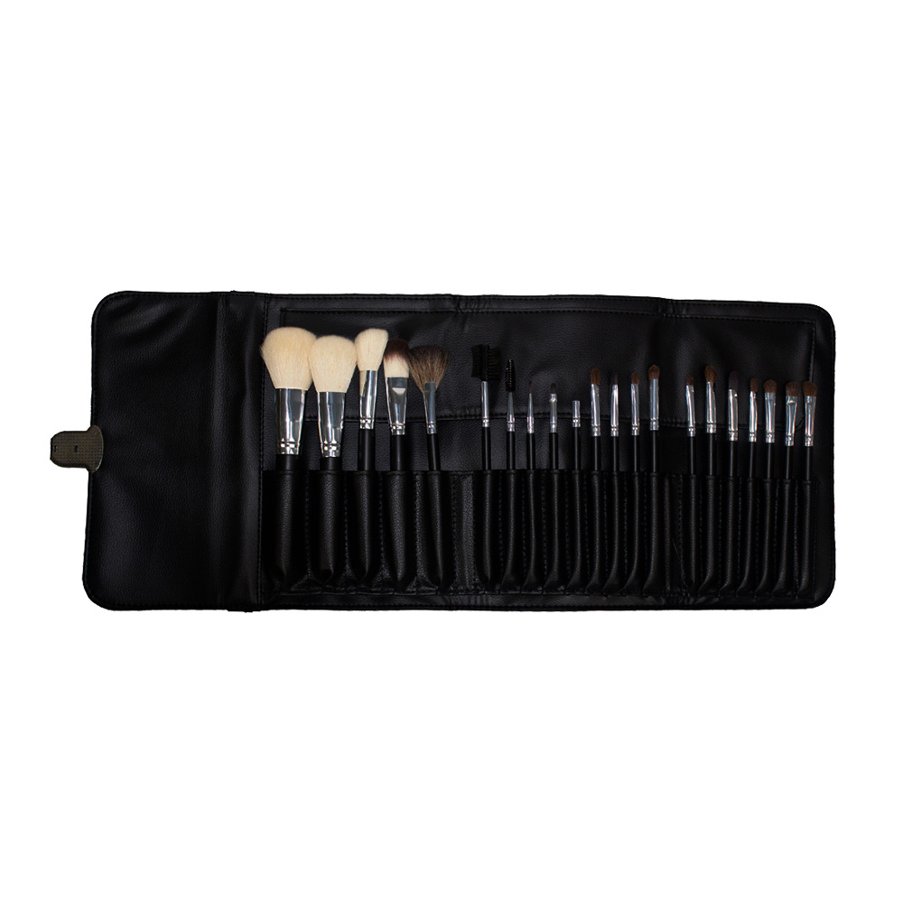 São diferentes tipos de pincéis, grandes, médios e pequenos que são úteis para diversos tipos de maquiagem. O Kit vem com um forro especial de couro que protege os pincéis e deixa um acabado charmoso.
