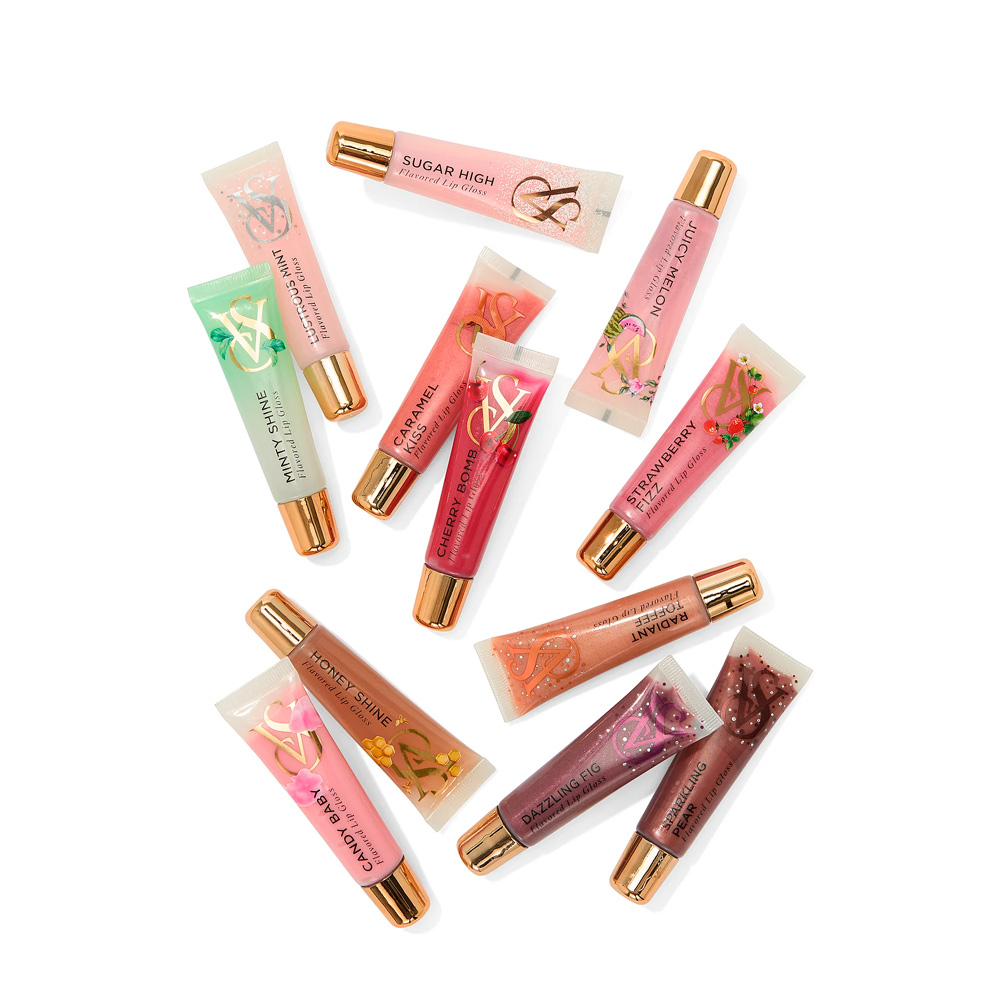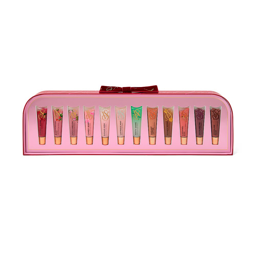 Brilho imbatível durante toda a temporada de festas. Este kit com 12 lip gloss traz tons luminosos e translúcidos perfeitos para todas as suas celebrações. Cada lip gloss possui sabor delicioso e um acabamento radiante, ideal para realçar os lábios com um toque festivo.