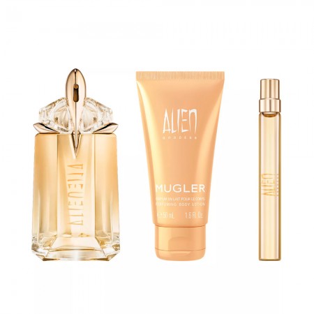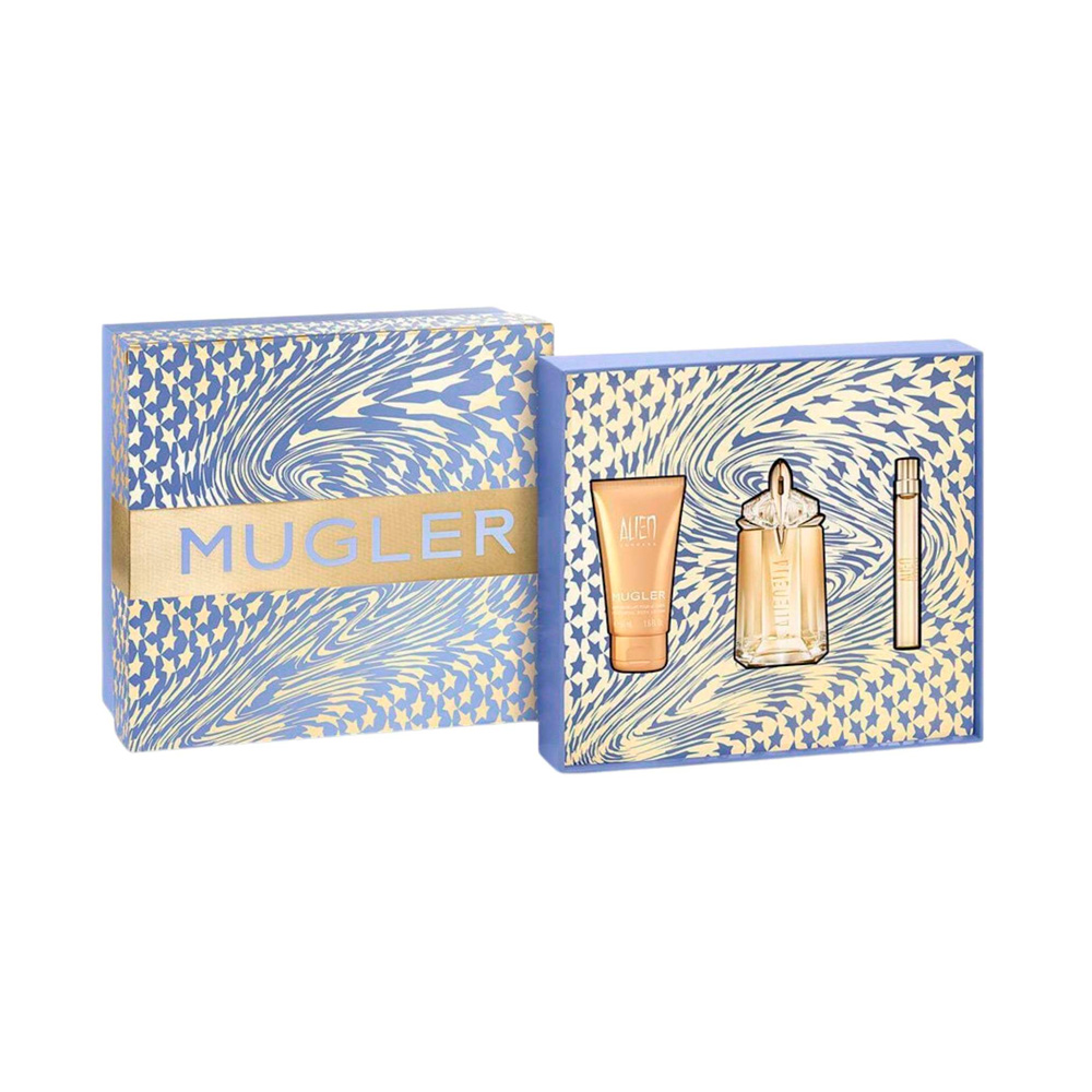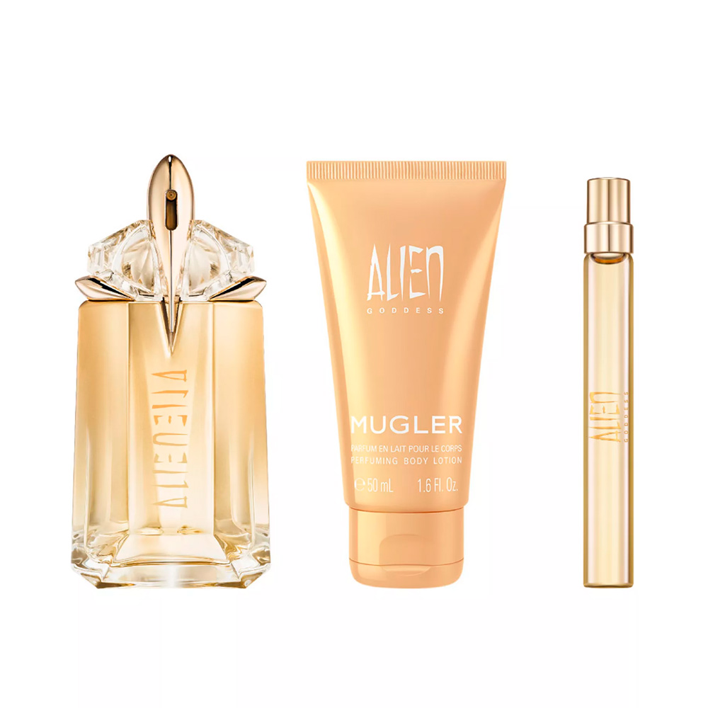O Kit Mugler Alien Goddess celebra a feminilidade moderna com uma fragrância luminosa, envolvente e sensual. Alien Goddess é um perfume que combina energia solar, doçura sofisticada e um toque floral cremoso, ideal para mulheres confiantes que irradiam luz e presença por onde passam.