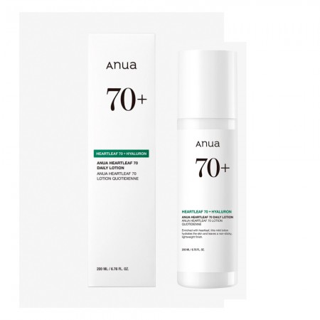 A Heartleaf 70 Daily Lotion da ANUA é uma loção hidratante leve e calmante, formulada com 70% de extrato de Heartleaf (Houttuynia Cordata), um ingrediente natural conhecido por suas propriedades anti-inflamatórias e purificantes.