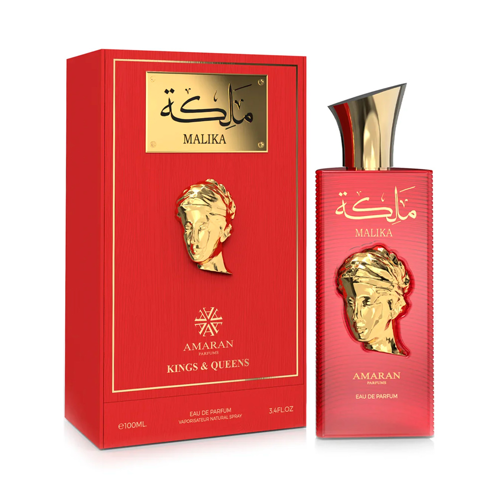 Kings & Queens Malika de Amaran, um perfume feminino doce, elegante e majestoso, que combina notas gourmand e florais para um rastro inesquecível.