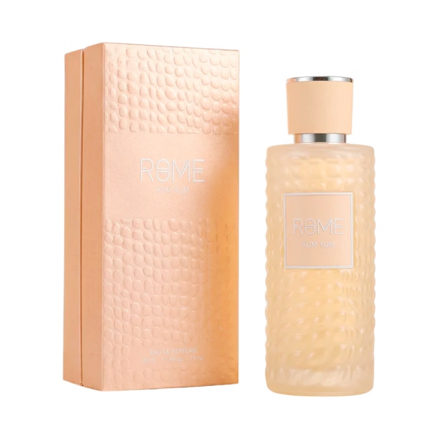 Rome Yum Yum é uma fragrância deliciosa e envolvente que combina frescor floral com notas frutadas e um irresistível toque gourmand. Sua composição abre com acordes cítricos e florais luminosos que trazem leveza e energia. No coração, notas doces e frutadas criam uma sensação cremosa e divertida, revelando um perfume moderno, jovem e extremamente cativante.
