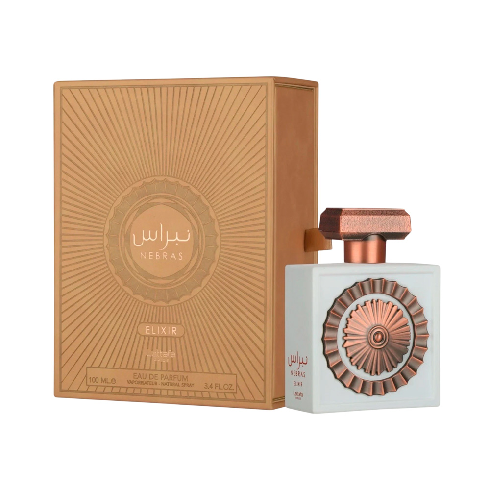 Nebras Elixir, da Lattafa Perfumes, é uma fragrância Oriental Baunilha para mulheres e homens. É um lançamento recente, em 2025, e foi criada pelo perfumista Nanako Ogi.