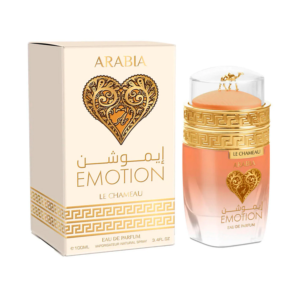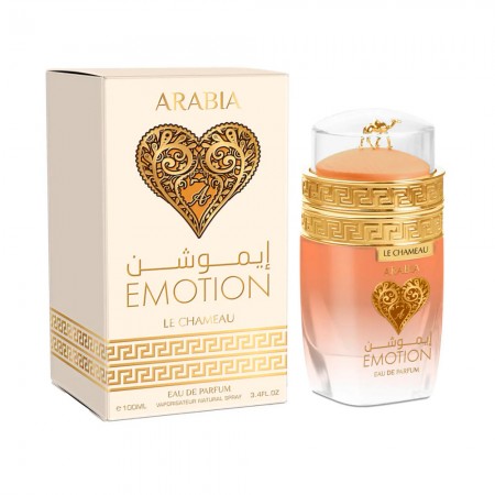 Emotion da LE CHAMEAU Arabia um perfume contemporâneo impregnado com a essência da elegância intemporal. Este aroma cativante evoca a sua beleza magnética, autoconfiança e imaginação sem limites.