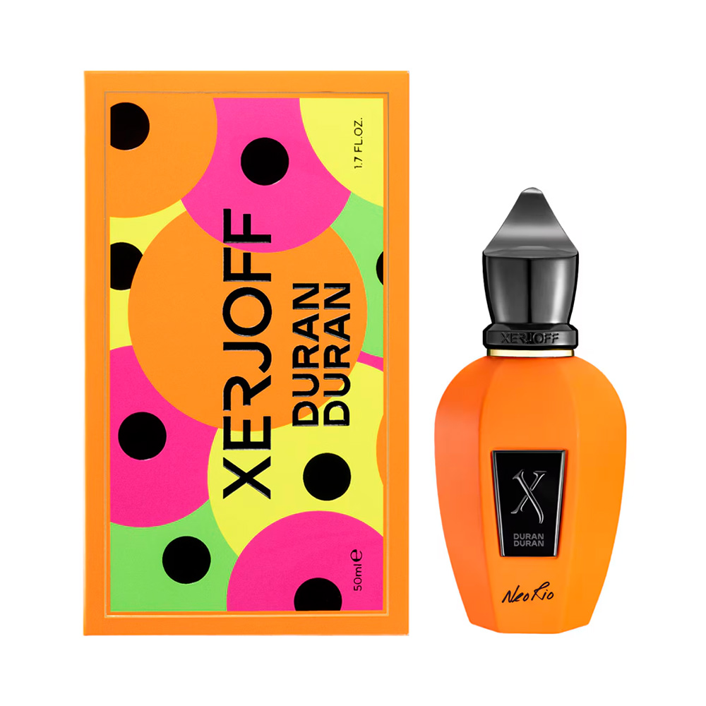 Xerjoff Duran Duran NeoRio Eau de Parfum, uma fragrância unissex que celebra a criatividade e a energia inovadora de Duran Duran, traduzidas em uma composição elegante, magnética e fora dos padrões convencionais da perfumaria. NeoRio apresenta uma assinatura ousada e artística, combinando acordes doces, resinosos e especiados com um fundo profundo e envolvente. Parte da coleção Xerjoff Blends, é uma criação exclusiva que une música, arte e alta perfumaria. O frasco traz a assinatura autógrafa de Simon Le Bon, tornando-o uma verdadeira peça de colecionador.