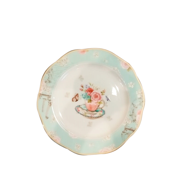Prato de Porcelana com Desenhos de Xícara e Flores