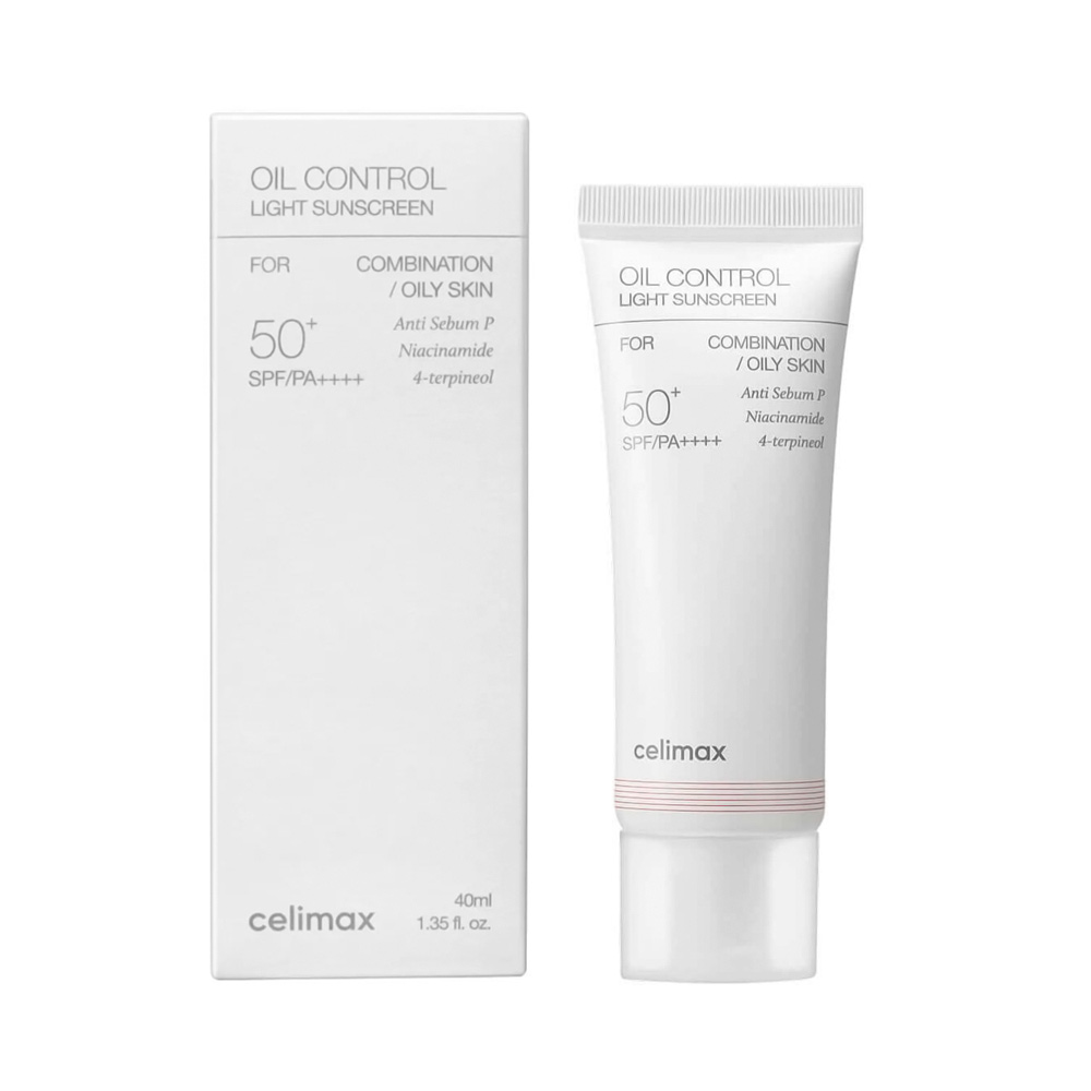 Oil Control Light Sunscreen SPF 50+ PA++++ de Celimax. Um protetor solar híbrido de amplo espectro SPF 50+ PA++++ que oferece proteção eficaz contra os raios UVA e UVB, sendo ideal para peles sensíveis, oleosas e mistas. Sua fórmula foi desenvolvida para proporcionar alta proteção solar sem agredir a pele, mantendo conforto e equilíbrio ao longo do dia.