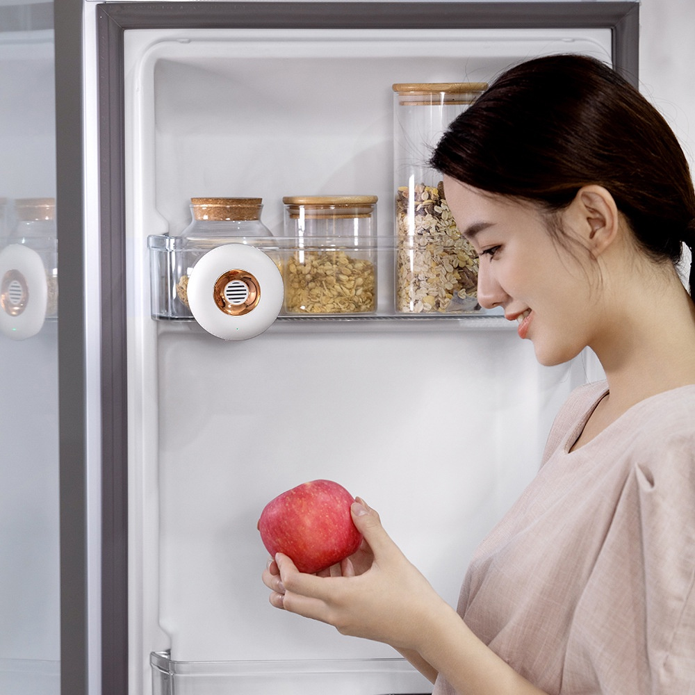 - Seguro e não tóxico: o produto eletrônico detecta quando o refrigerador é aberto, gerando ozônio por meio de um sensor embutido.