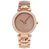 Este relógio de senhora da coleção Parker apresenta uma pulseira de aço inoxidável rosa-tom e madrepérola de cristal de discagem.