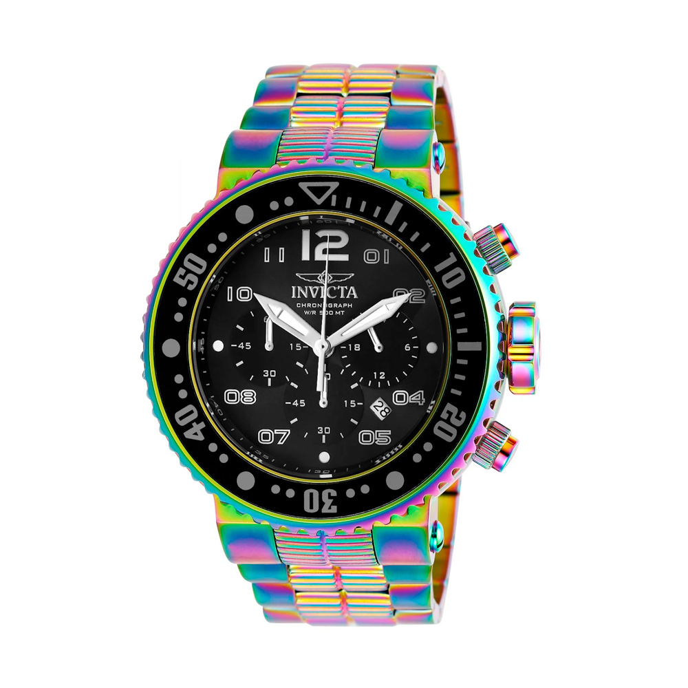 O Invicta Pro Diver 25078 é um relógio masculino de alto desempenho, com resistência à água de até 500 metros, ideal para mergulho e uso esportivo. Possui design marcante com caixa de 52mm em aço inoxidável com revestimento arco-íris, que adiciona um toque moderno e ousado.