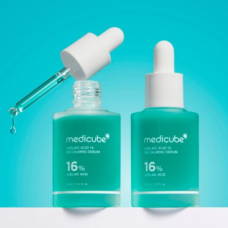 O Azelaic Acid 16 BB Calming Serum da MEDICUBE é um tratamento intensivo formulado com 16% de ácido azelaico, desenvolvido para reduzir imperfeições, uniformizar o tom da pele e acalmar peles sensíveis ou com tendência à acne.