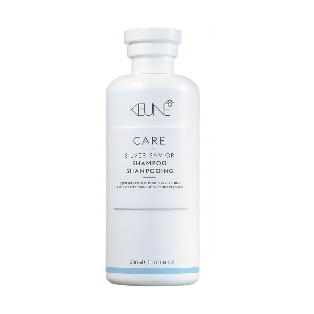 Shampoo Keune Care Silver Savior, neutraliza os tons quentes para revelar um fundo platinado bonito. Formulado com pigmentos violetas, que eliminam a coloração amarelada causada pela oxidação natural dos fios. Também traz ativos que proporcionam maciez e protegem a fibra capilar. Você conquista um platinado impecável, com muita saúde.