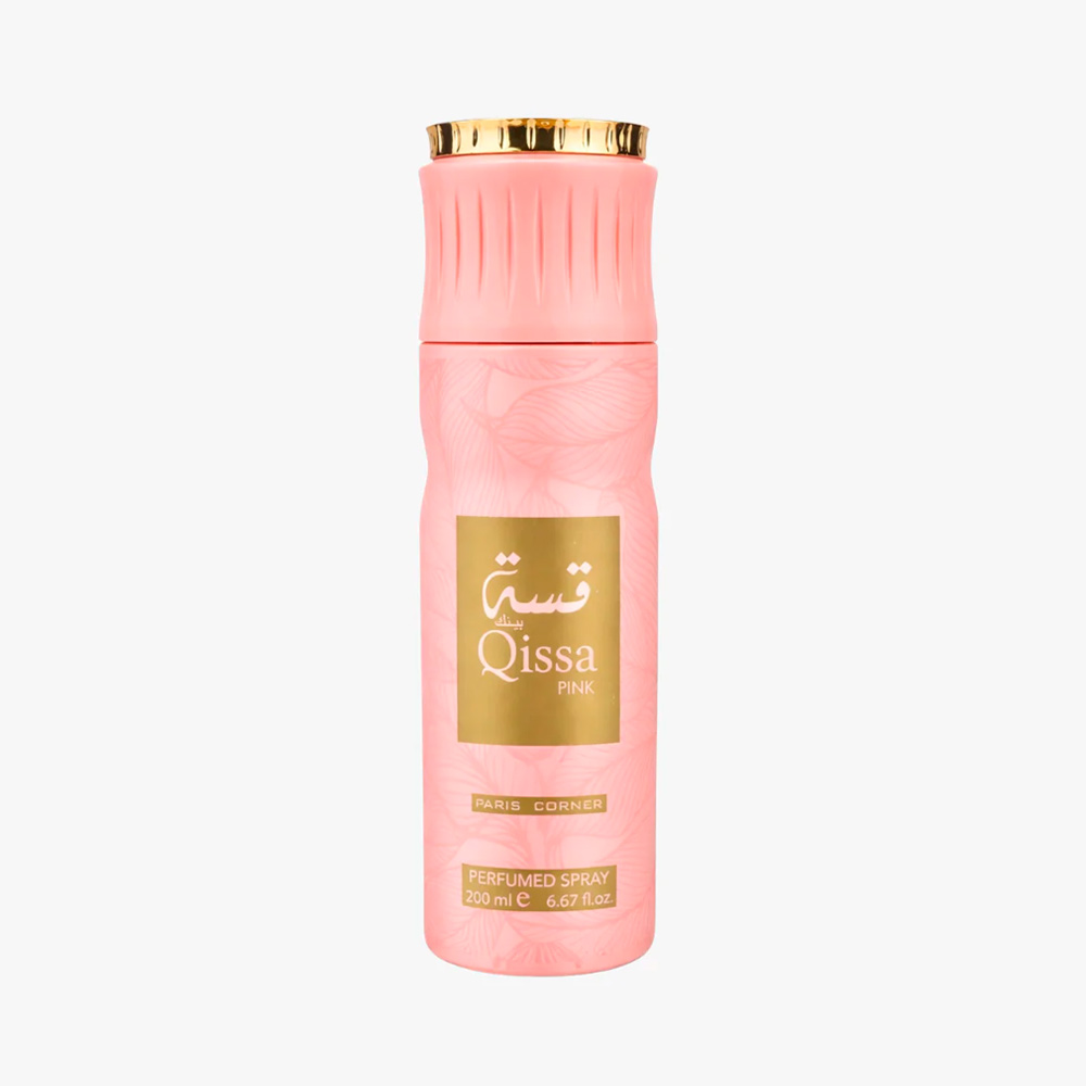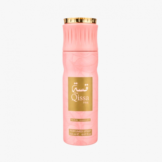 O Paris Corner Qissa Pink é um spray corporal perfumado feminino que combina frescor frutado, flores delicadas e um fundo doce e amadeirado. Leve e romântico, envolve a pele com uma fragrância suave e agradável, ideal para o uso diário.
