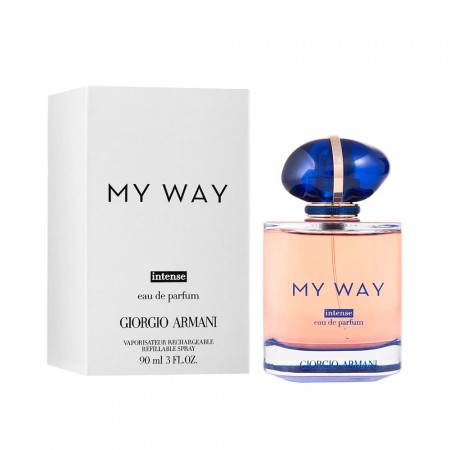 My Way Intense convida você a sair e se descobrir, em uma jornada feita de encontros significativos e experiências importantes. Uma floralidade amplificada em um rastro amadeirado persistente, baseado em ingredientes de fontes sustentáveis. A fragrância abre com notas brilhantes de flor de laranjeira do Egito. Um novo e intenso coração de tuberosa indiana revela um lado suave e aveludado da assinatura floral. Na parte de baixo, a sandália da Nova Caledônia ganha um caráter irresistivelmente cremoso graças ao encontro com a voluptuosa baunilha de Madagascar.